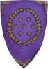 The arms of Vodacce are: a laurel wreath or (gold) encircling seven rondels (coins) or (gold), on a purple field. Every Merchant Prince also has their own heraldic achievement (coat of arms).