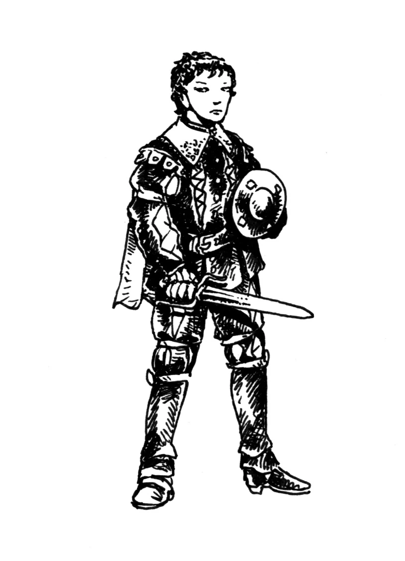 A Vodacce thug sporting a cinquedea short sword and a buckler.